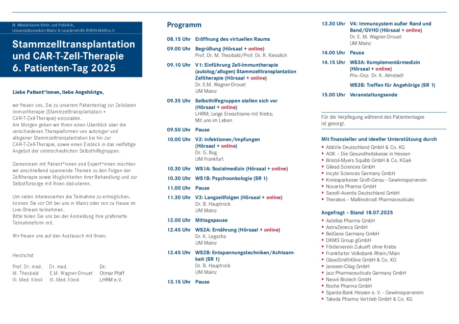 6. Patiententag in Mainz - Stammzelltransplantation und CAR-T-Zelltherapie